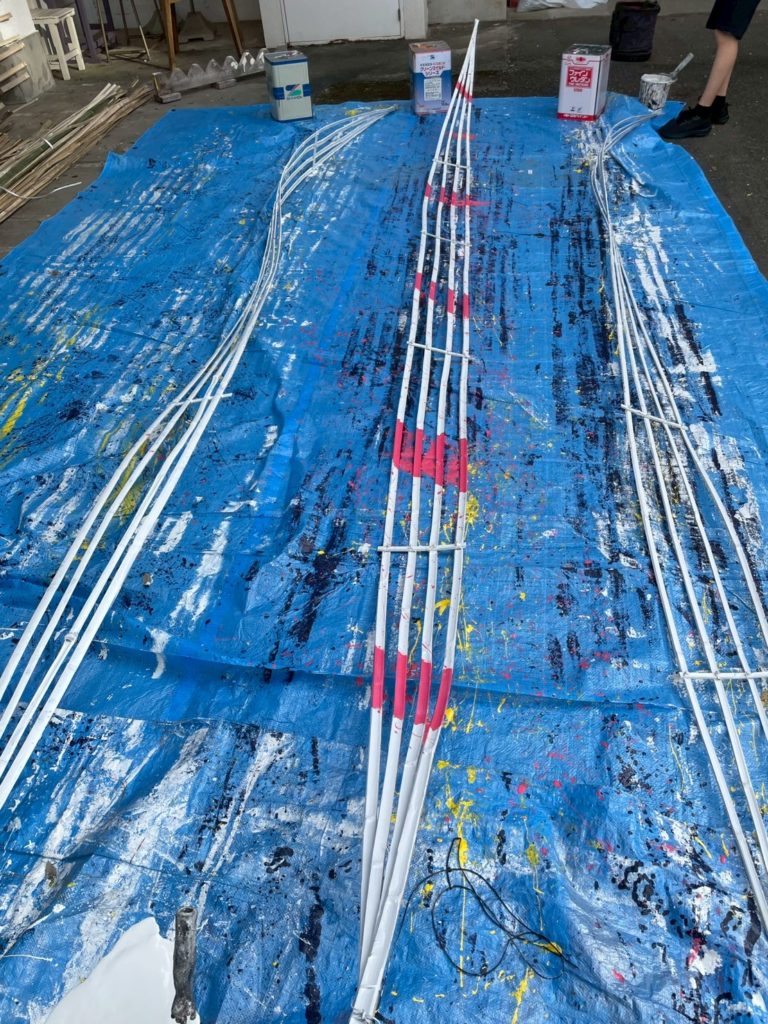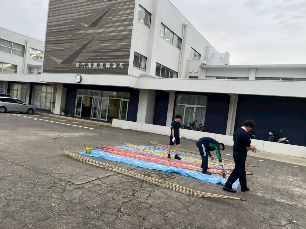 Bamboo Project Japan(BPJ)は、昨年に続き藤沢翔陵高校の文化祭において、校門に設置する竹のゲート制作を担当しました。約2ヶ月にわたり7回のワークショップを重ね、生徒と共に竹の切り出しから彩色、組み立てまでを行い、文化祭当日に完成させました。