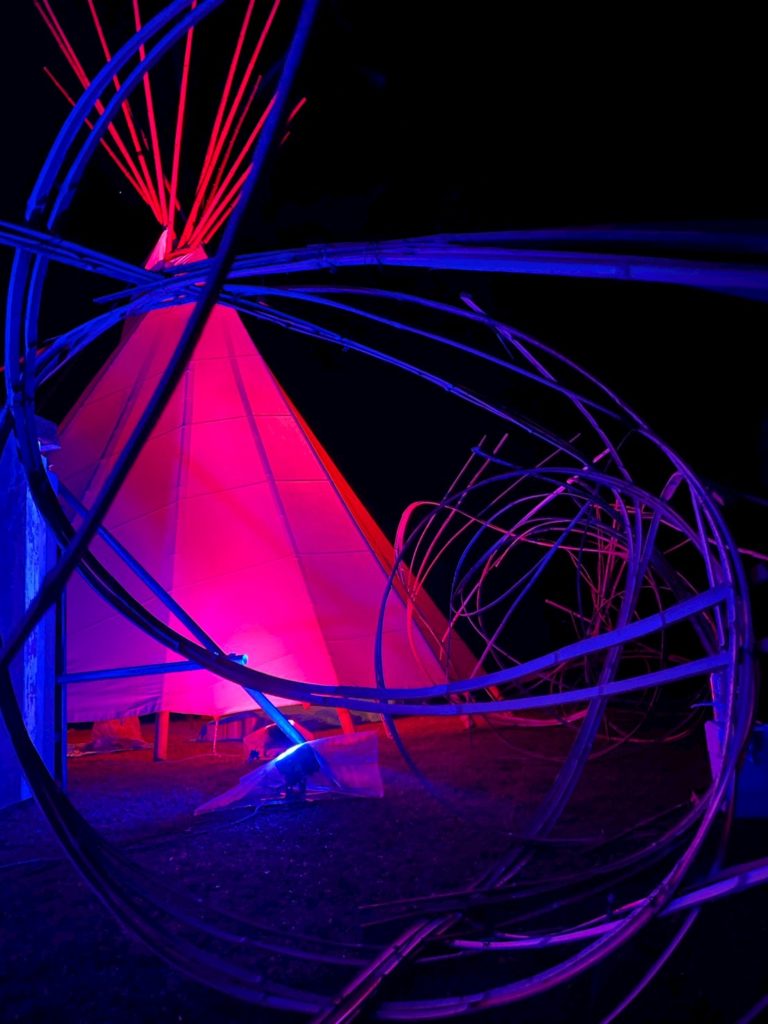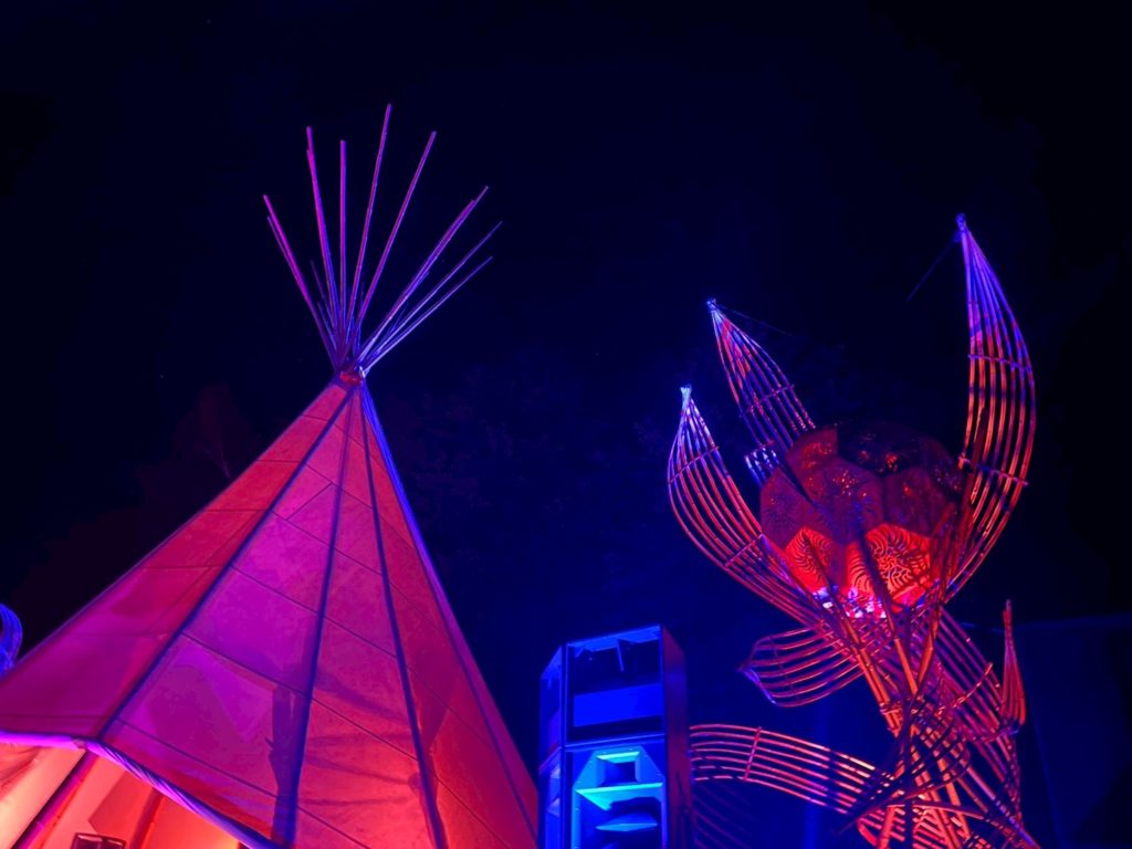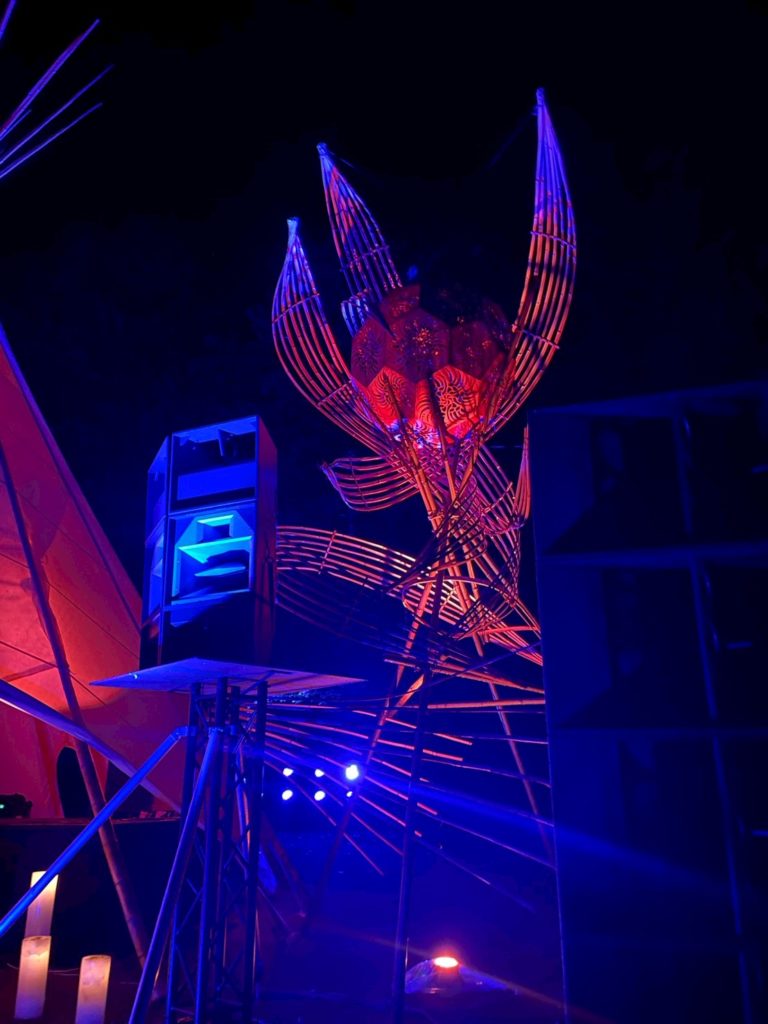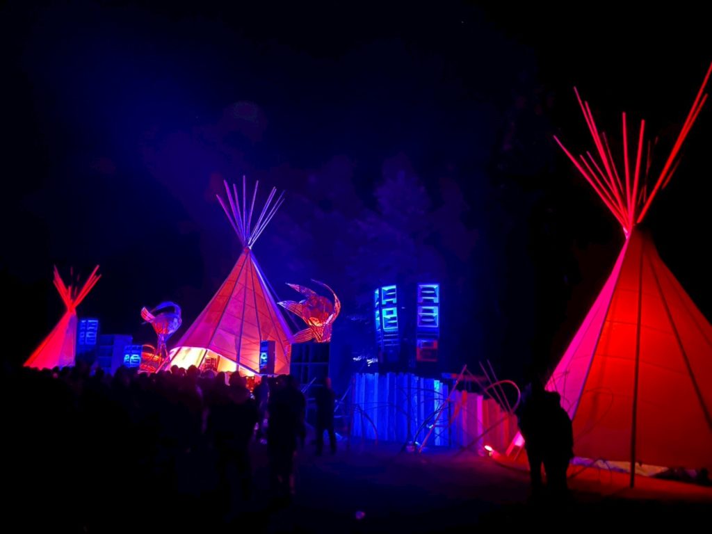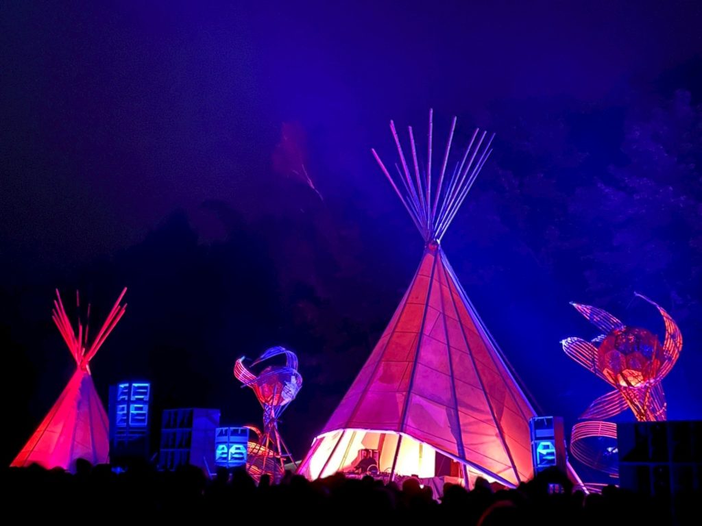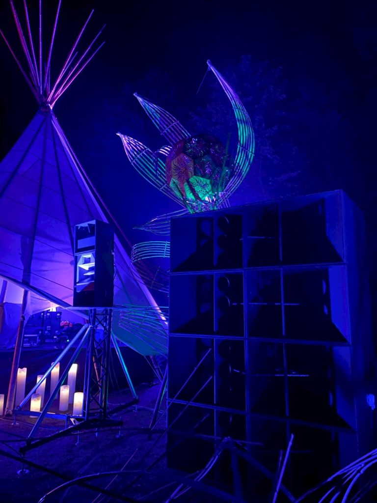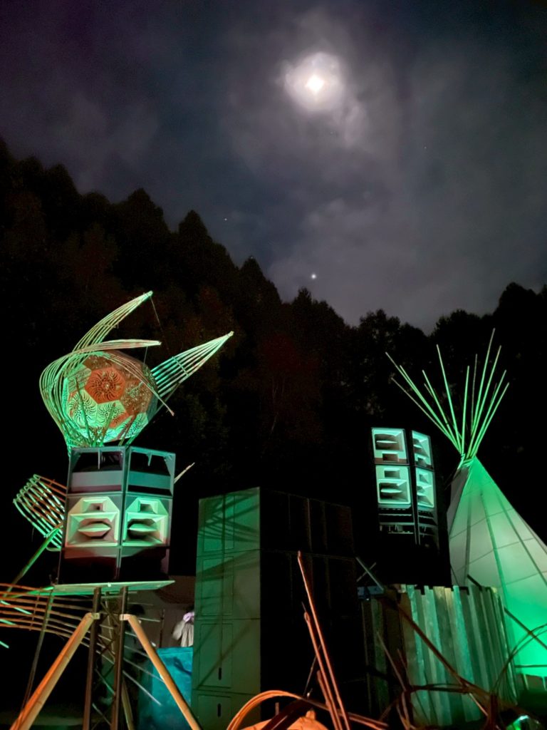 2025年の出演者には、Kangding Ray、Peter Van Hoesen、Voices from the Lake、Fred P など、世界的に評価されるアーティストが多数ラインナップ。彼らの深い音像を最大限に引き出すため、ステージ装飾は“音の余白”を邪魔しないミニマルな構成を基調としながら、自然の中で音が立ち上がる瞬間を視覚的にも感じられるよう、素材のレイヤーや陰影を細かく調整しました。