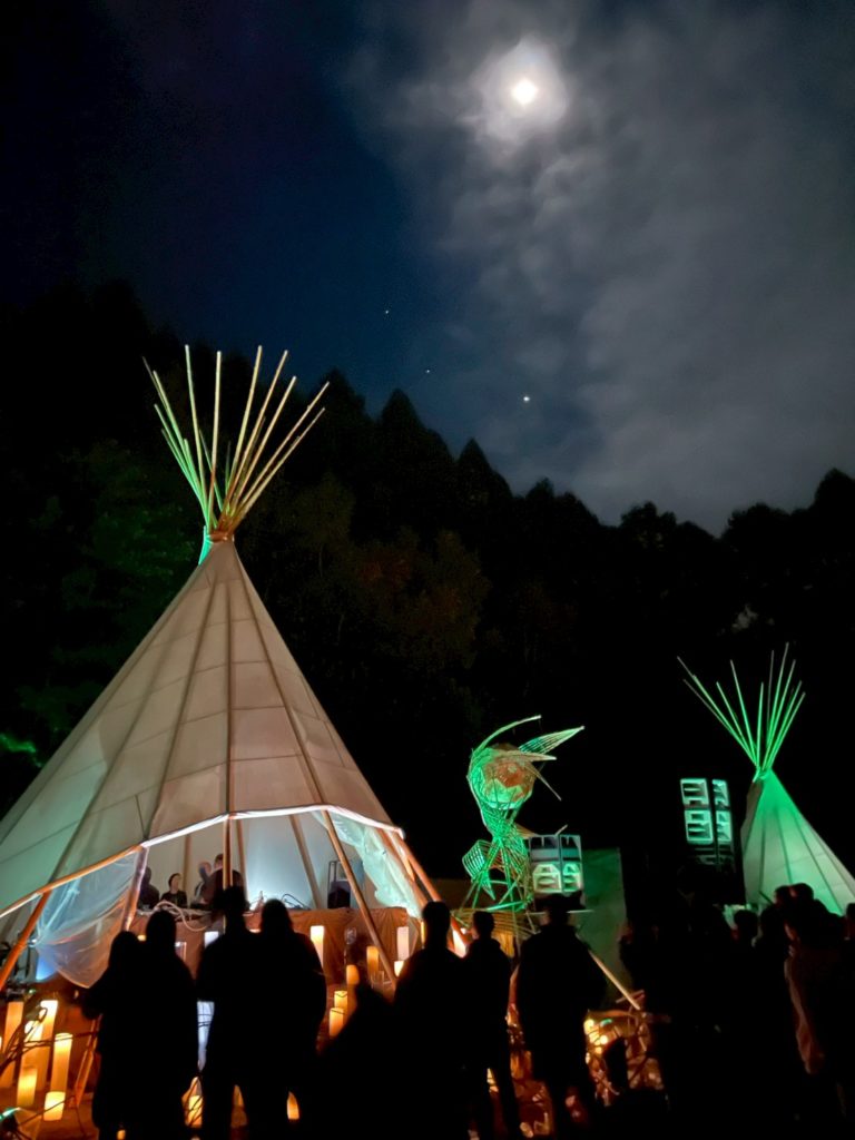 日本を代表するアンダーグラウンド電子音楽フェス「The Labyrinth」。世界中の音楽ファンから熱い支持を集めるこの野外イベントは、2025年も群馬県みなかみ町・宝台樹キャンプ場で開催されました。標高1000mの大自然に囲まれた会場で、深い没入感を生むサウンドと自然が一体となる独自の世界観が特徴です。今年もBamboo Project Japanは、このラビリンスのステージ装飾を担当しました。